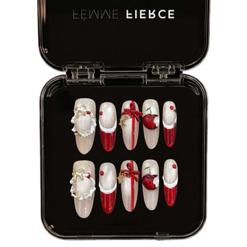 A festive blend of cherry-red accents, hand-painted apple charm, and soft pearl shimmer. Inspired by holiday ribbons and winter treats, this set brings playful luxury to every moment. Perfect for Christmas parties, cozy dates, and holiday gifting.